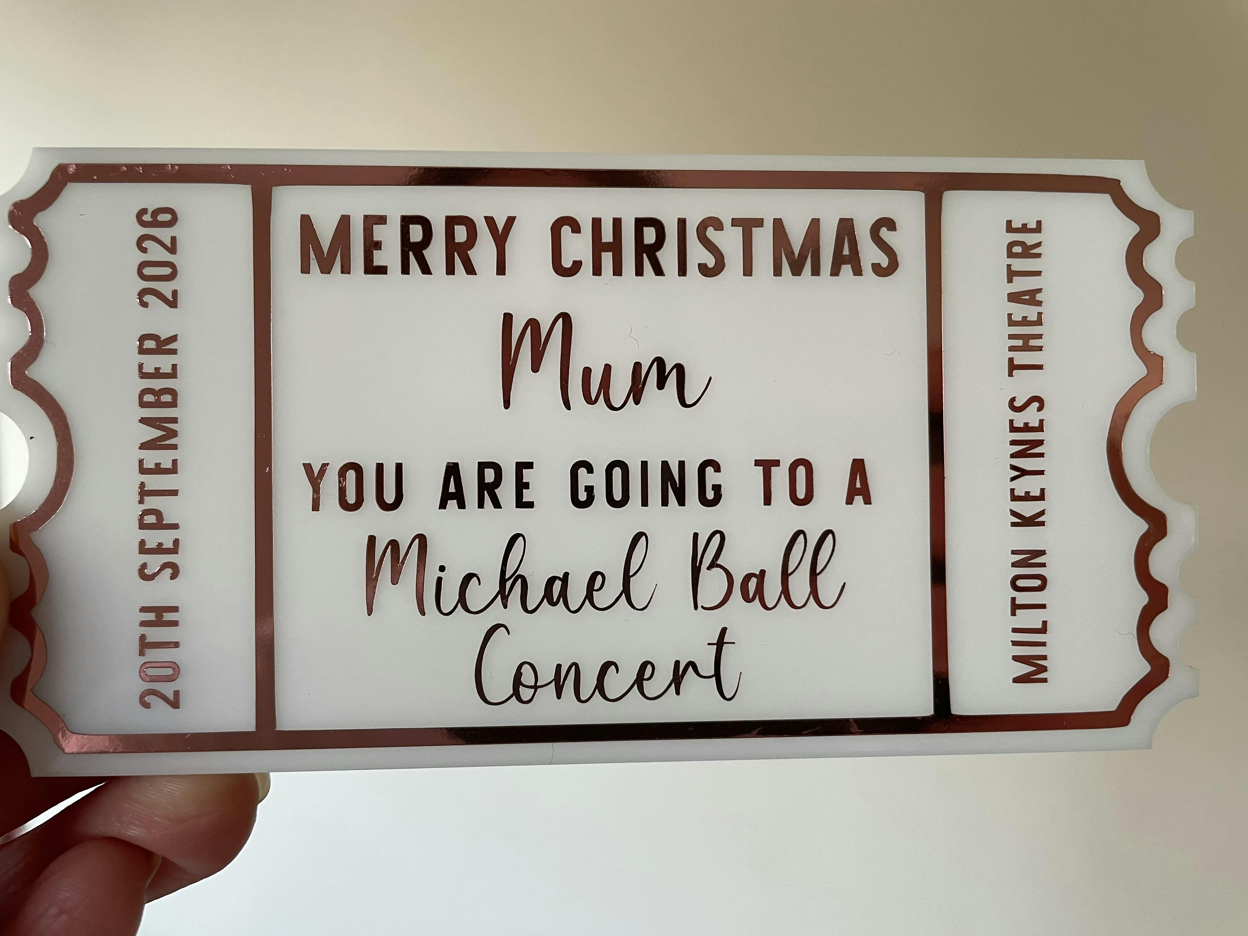 Give the gift of an event in style with our Personalised Acrylic Ticket!