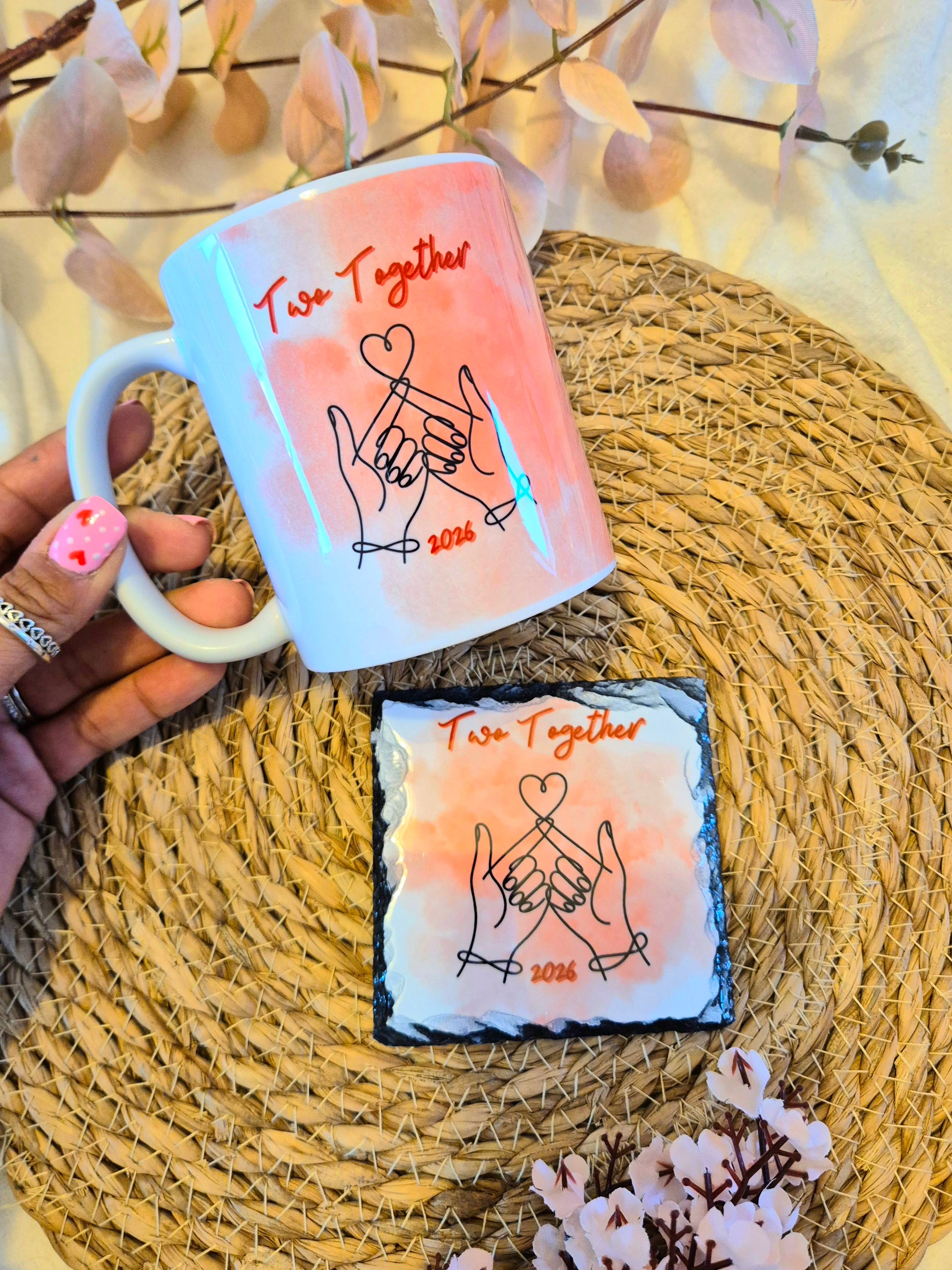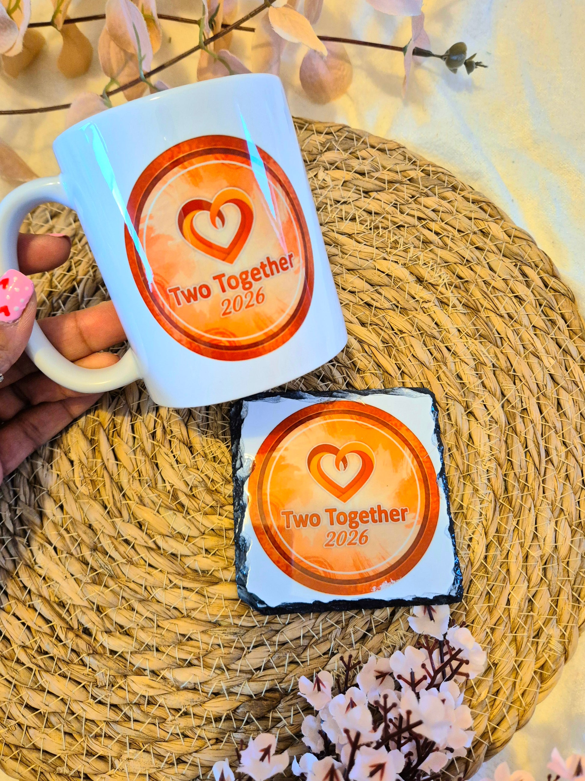 Choose from a mug and matching coaster, coaster & matching notebook or mug and matching notebook!