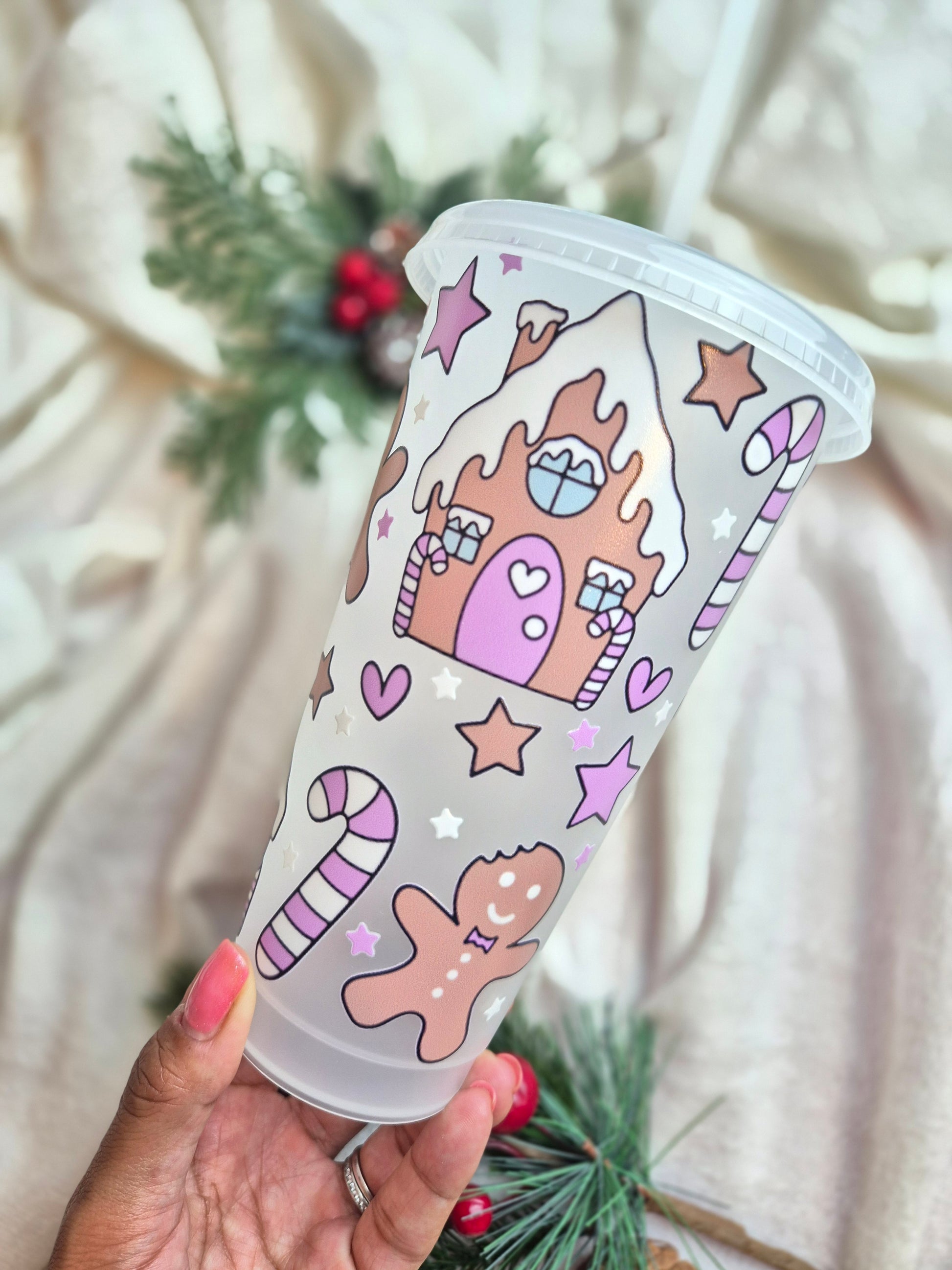 Embrace the holiday cheer with our Festive Gingerbread Cold Cup. This frosted cup is the perfect addition to your festive spirit, featuring a bright gingerbread design that is sure to bring a smile to your face. Stay cool while sipping on your favourite drinks in style! (Only available while supplies last!)